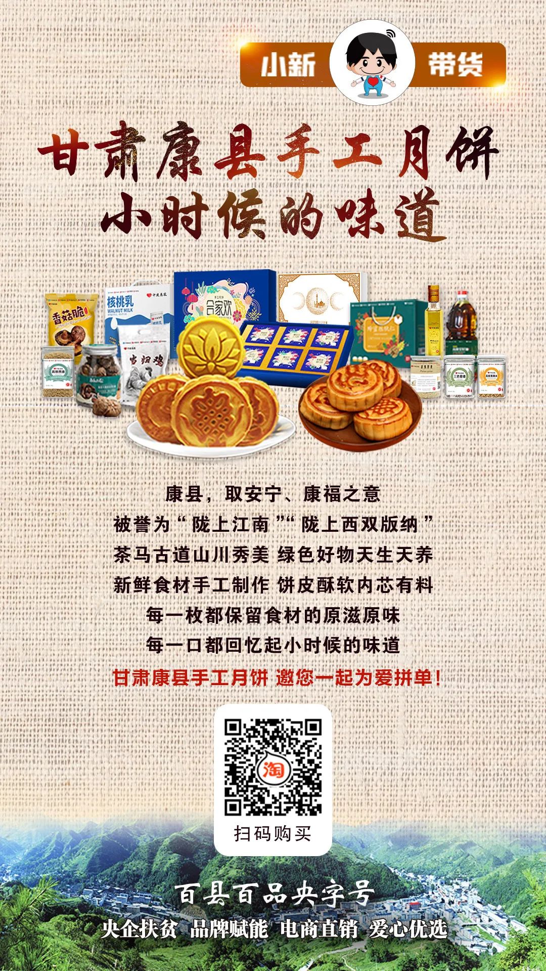“百縣百品央字號”暨“小新帶貨”第二十二場來到中建集團定點扶貧縣——甘肅省隴南市康縣,直播帶貨甘肅大山里的手工月餅。