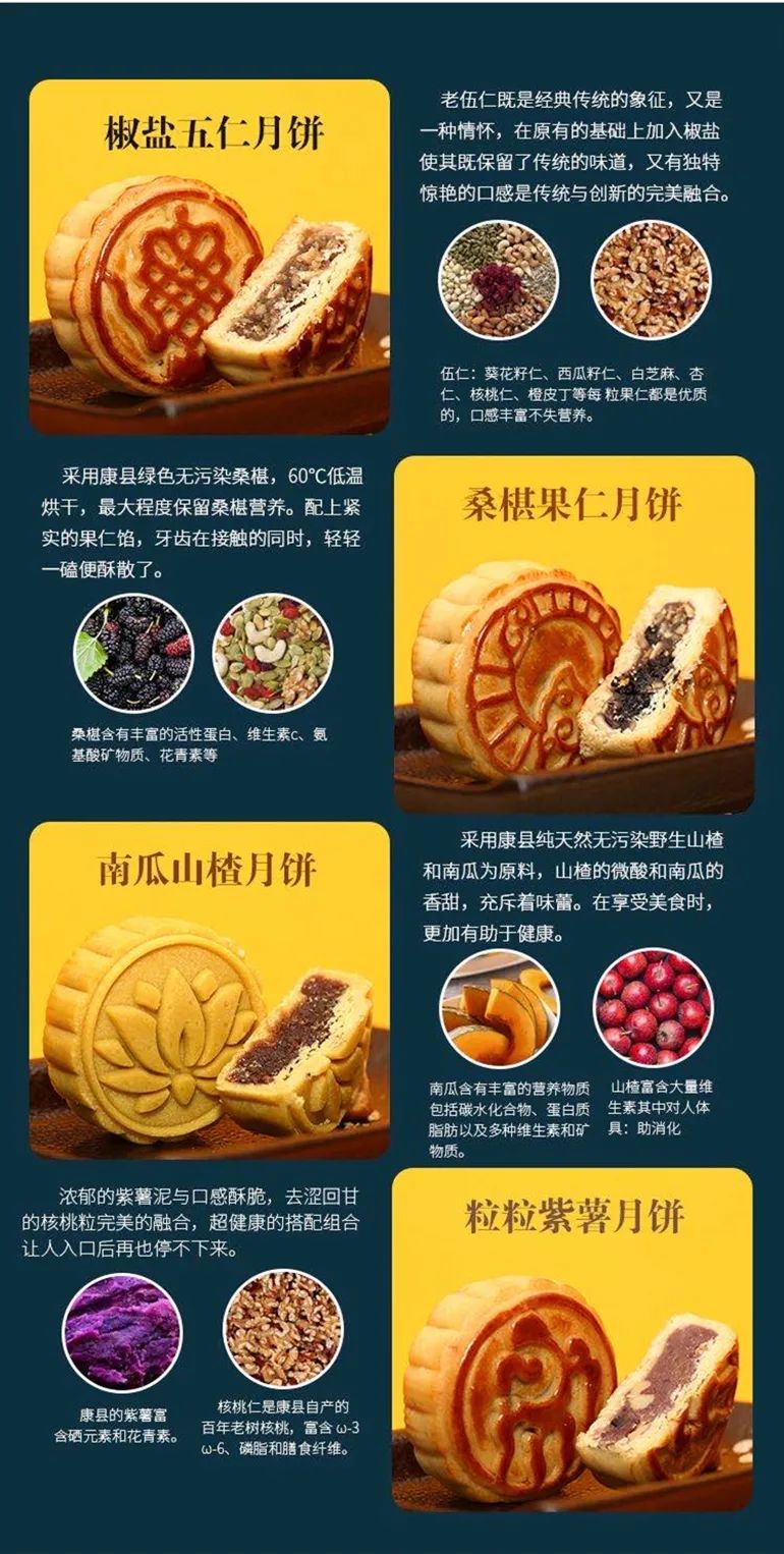 椒鹽五仁、粒粒紫薯、桑椹果仁、南瓜山楂……多款口味豐富的獨特月餅,所有原材料均產自當地。