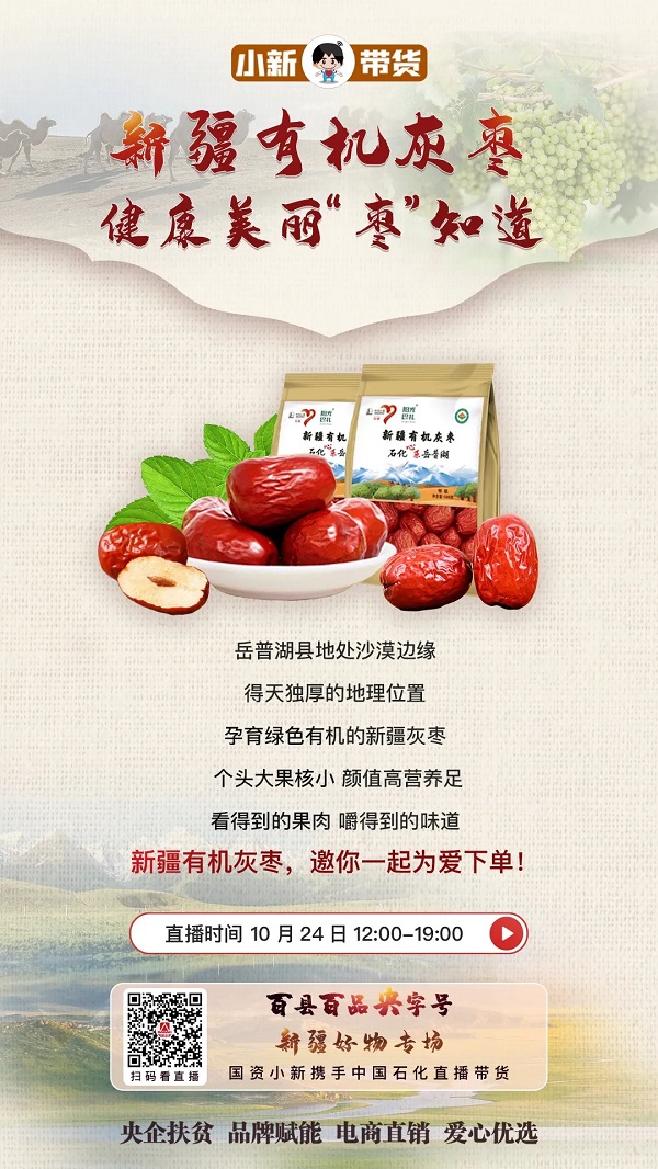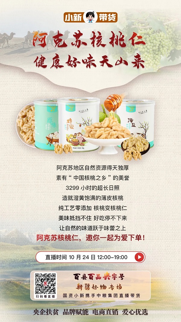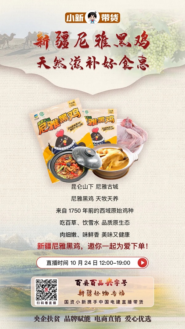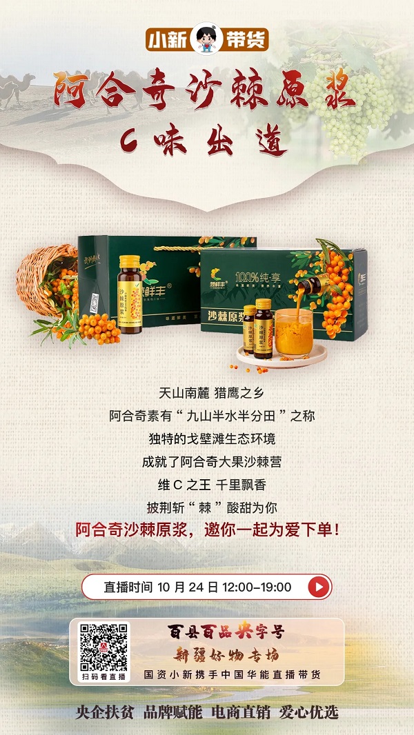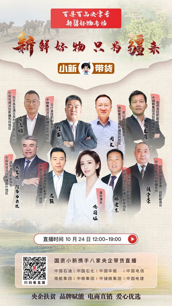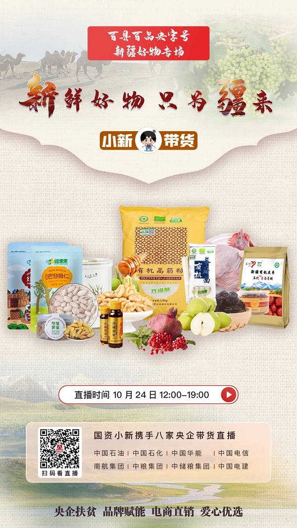 10月24日12:00—19:00,一起體驗大美新疆特色好物,一起助力脫貧攻堅為愛下單,國資小新快手直播間不見不散。