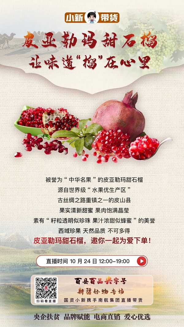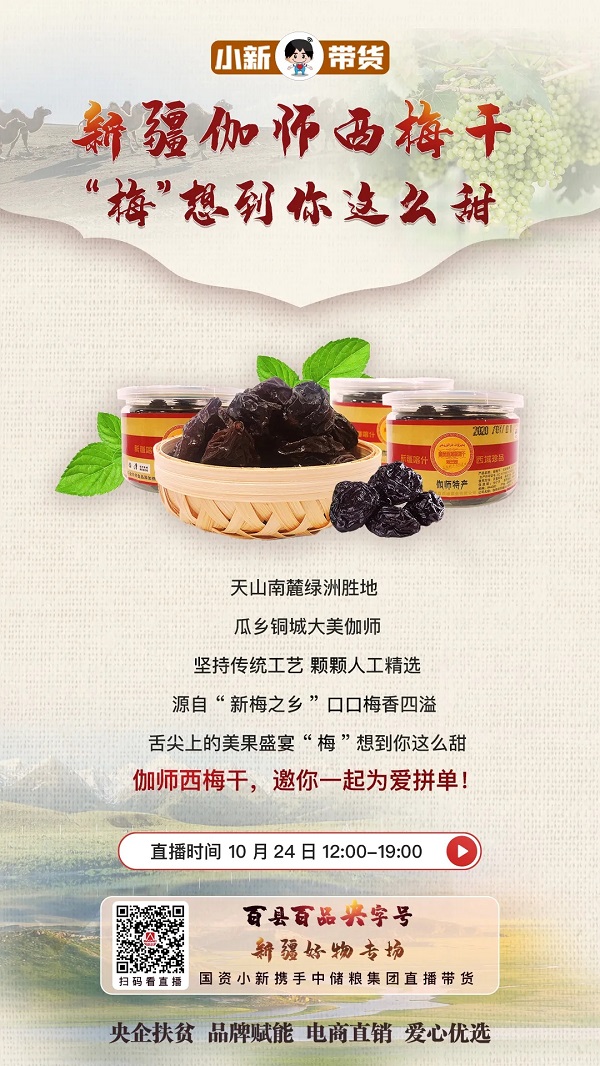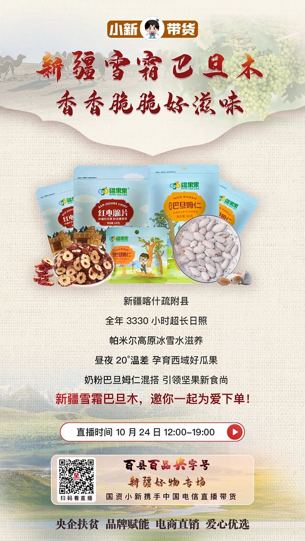 金秋十月,正是新疆瓜果上市的季節。10月24日12:00—19:00,“百縣百品央字號”暨“小新帶貨”融媒體扶貧行動帶你打卡大美新疆,足不出戶嘗遍新疆美食。