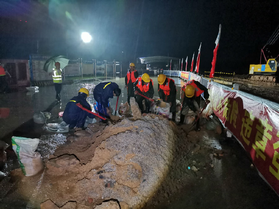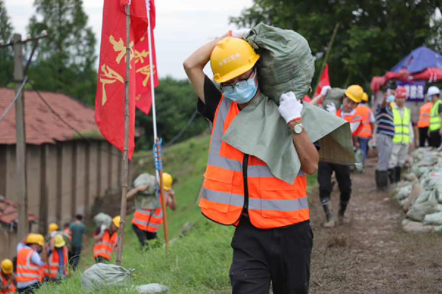 中交二航局組織506人對武漢朱家河沿岸約兩公里的河堤進行加固加高。