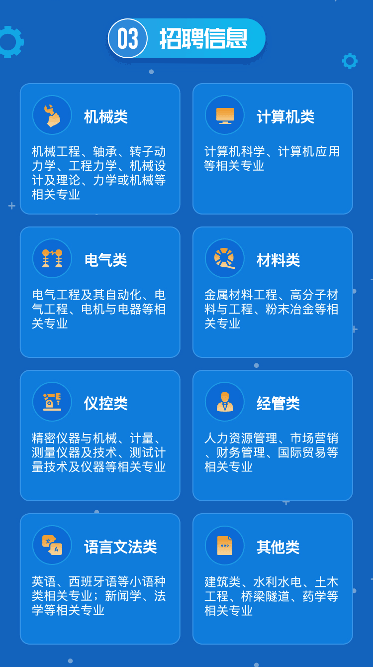 國機集團面向企業未來發展需要,積極響應“六穩”、“六保”工作精神,深挖用人潛力,以實際行動助力應屆畢業生就業,全面啟動2021校園招聘。本次校招涉及下屬74家成員企業,提供3000多個工作崗位,涉及機械類、計算機類、電器類、材料類等多個專業,工作地點覆蓋全國各大中城市。國機集團將為優秀高校畢業生提供成長成才的舞臺,讓我們共同建設世界一流企業,振興中國機械工業!