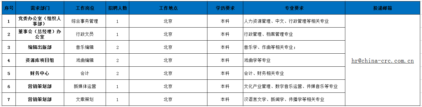 咨詢電話:13439802570 郵箱地址: hr@china-crc.com.cn