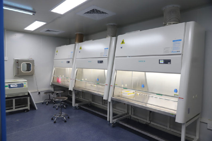 建設“火眼”實驗室時,實驗室的一些精密儀器用到了一些當時很難采購的電氣元件,比如電力調功器、變頻器等。經過協調,這些元件一部分在湖北鄂州組裝,另一部分在江蘇組裝,最后運輸到現場再完成全部組裝。“有時候材料找到了,廠家沒車運輸,我們調集車輛自己去拉;如果廠家沒有原材料,我們自己采購材料送到廠家加工;遇到實在不能加工的,我們便到疫情較輕的省份,把未完工項目的設備拆借過來。”劉宜全說。