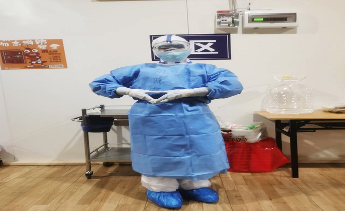 “一切為了病人。”劉曉芳始終牢記南丁格爾的這句話。自2月11日晚進艙,劉曉芳每天的工作緊張而有序,穿上防護服的她穿梭在自己負責的病人之間,發藥、抽血、測生命體征及血氧飽和度、發餐、遞口罩、填寫記錄單,同時梳理所有患者的病史、病情變化,觀察檢驗結果、治療情況,再進行查房觀察、調整治療等,努力為每位患者爭取更多戰勝疫情的時間。
