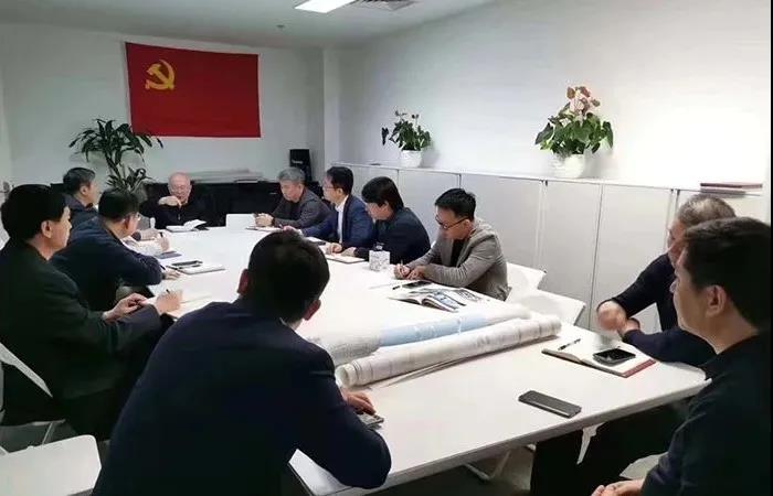 黃錫璆(前排左)和設(shè)計團隊成員及施工方在討論小湯山醫(yī)院建設(shè)方案
