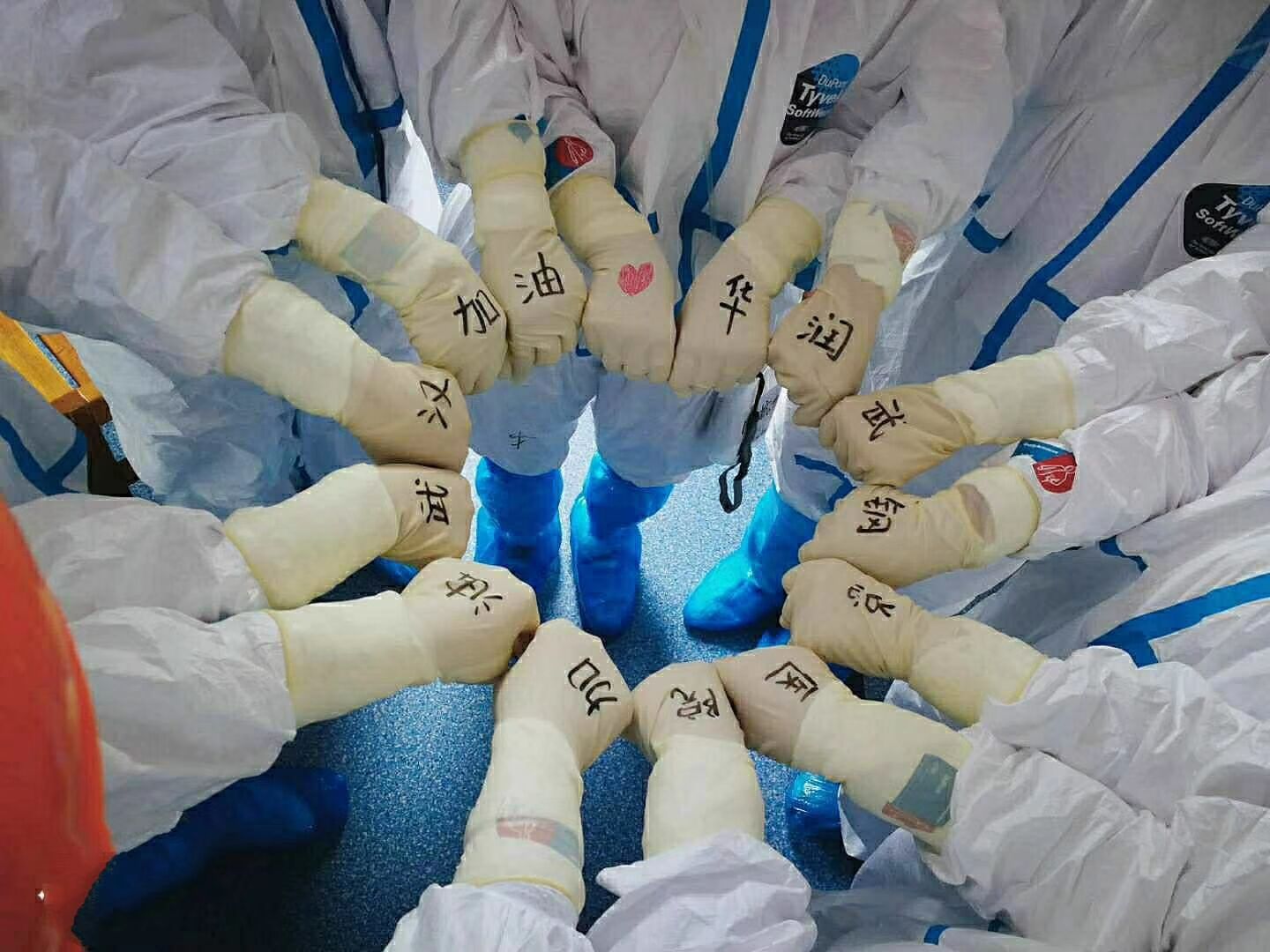 廣大醫務人員白衣執甲、逆行而上、英勇無畏、披荊斬棘、舍生忘死沖向前線挽救患者生命?!拔沂枪伯a黨員,我上”“我年輕,我上”……一封封請戰書上寫滿了白衣戰士的無畏選擇,誓言鏗鏘,丹心閃耀。13個黨支部、4個臨時黨支部、9個黨員突擊隊,全院300多名黨員沖鋒陷陣,讓鮮紅的黨旗在抗疫一線迎風飄揚。他們承受著身體和心理的極限壓力,臉頰被口罩勒出血痕甚至潰爛,雙手因汗水長時間浸泡發白,錯過除夕佳節與家人團聚……即便如此,他們始終不忘初心,用血肉之軀筑起生命的防火墻。期間,涌現出了一大批先進人物和感人事跡。在救治患者的過程中不慎感染新冠的泌尿燒傷外科副主任醫師黃飛治愈后第一時間義務捐獻血漿400CC;呼吸與危重癥醫學科主任李欣獲全國衛生健康系統新冠肺炎防控先進個人稱號,支援金銀潭醫院醫療隊隊長黃萍榮獲湖北五一勞動獎章,血透室護士長虞莎榮獲武漢市抗擊新冠肺炎杰出護理管理者,王璇榮獲武漢市抗擊新冠肺炎杰出護士榮譽稱號……此外,在抗疫的后方,還有在寒風雨夜奔往高速路口搬運防護物資的采購員,有確保水電正常供應、高效完成病區改造的后勤工人,有晝夜趕工搭建遠程會診平臺的信息技術人員,還有扎根一線負責新聞報道的宣傳人員……他們同樣是這場戰疫中值得銘記的“英雄”!