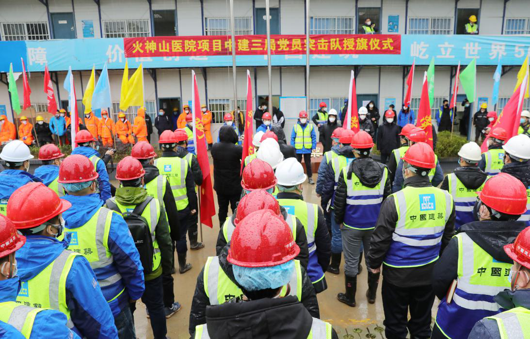 中建三局黨委分別于1月25日和28日成立火神山醫(yī)院項目、雷神山項目現(xiàn)場指揮部臨時黨委和多個臨時黨支部,為項目建設(shè)提供有力保障。工程建設(shè)中,項目黨支部充分發(fā)揮戰(zhàn)斗堡壘作用,組織成立了14個黨員突擊隊,廣大黨員同志身先士卒、主動請戰(zhàn),團結(jié)帶領(lǐng)廣大建設(shè)者無畏逆行,團結(jié)奮斗,攻克一個又一個極限挑戰(zhàn)和危難任務(wù)。真正將黨的組織力量轉(zhuǎn)化為了攻堅克難的戰(zhàn)斗力量。