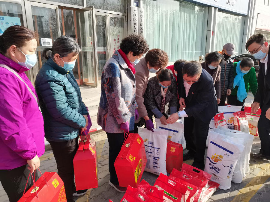 國家能源集團寧夏煤業公司志愿者為銀川市陽澄社區困難家屬和孤寡老人送去面油和水果等慰問品