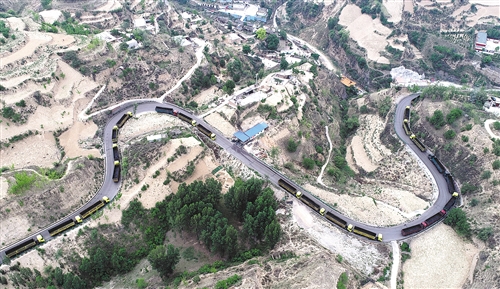 6月16日,在中國中鐵援建的保德幸福大道上,運煤車有序行駛。