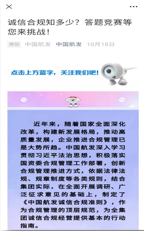 中國航發(fā)開展《誠信合規(guī)準則》網上答題競賽活動