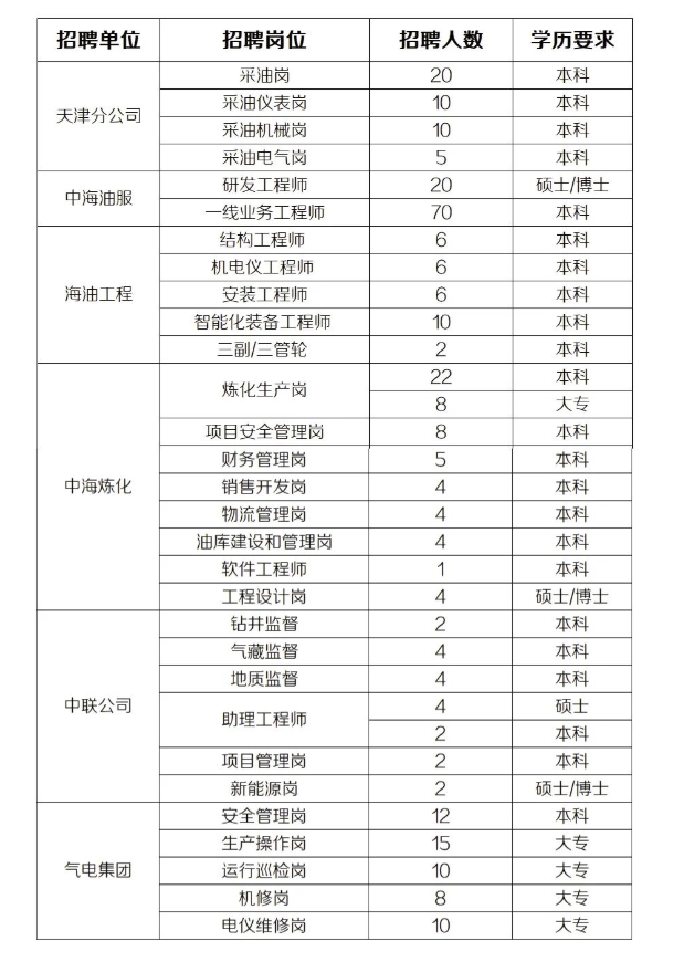 為深入貫徹落實黨中央、國務院關于穩就業工作、促進高校畢業生就業的部署要求,中國海油積極開展穩崗擴就業行動,進一步挖掘崗位潛力,創造就業崗位。即日起,中國海油正式啟動2022年夏季校園招聘,新增300個就業崗位,積極履行央企的經濟責任、政治責任、社會責任,為就業大局穩定貢獻力量。