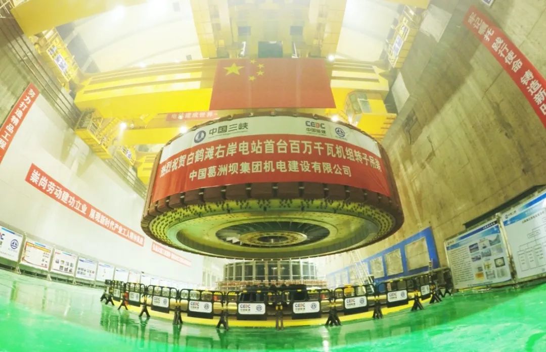 白鶴灘右岸電站首臺百萬千瓦機組轉子成功吊裝