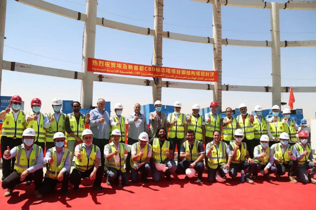 ▲ 圖為由中建集團(tuán)承建的埃及新首都CBD標(biāo)志塔項(xiàng)目鋼結(jié)構(gòu)塔冠封頂現(xiàn)場(chǎng)
