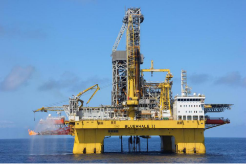 中集集團旗下中集來福士海洋工程有限公司設計建造的超深水半潛式鉆井平臺“藍鯨2號”作業畫面