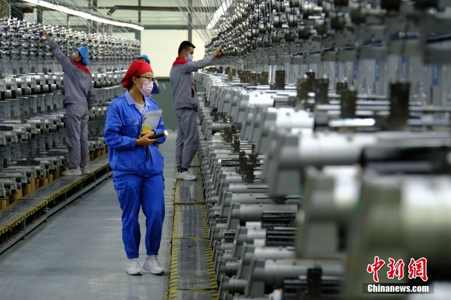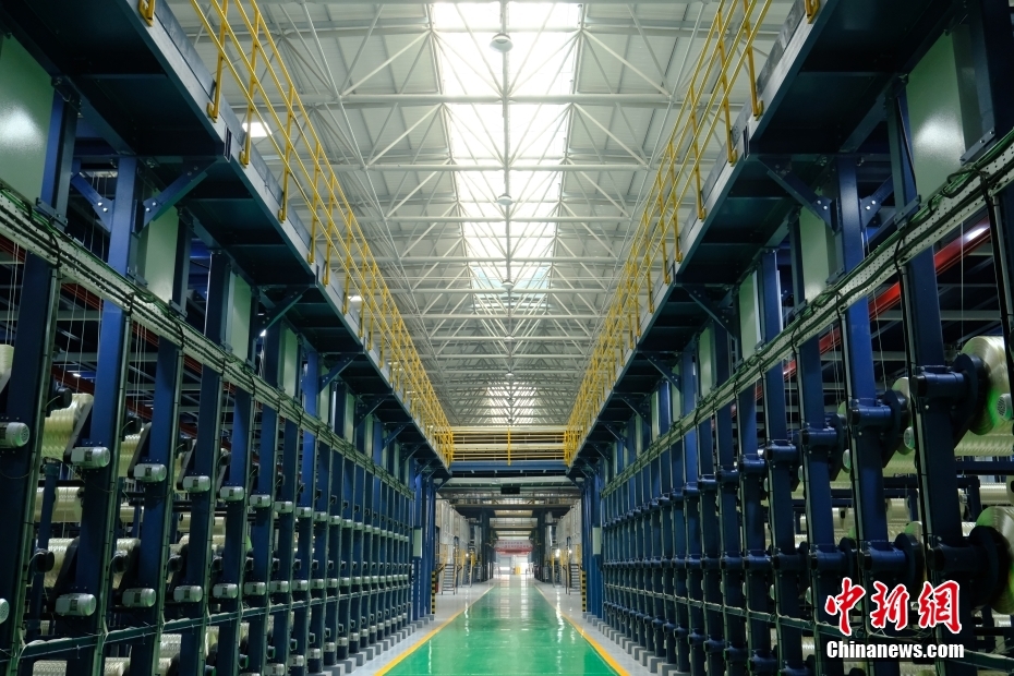 今年5月,全球最大高性能碳纖維基地——中復神鷹西寧年產2.5萬噸高性能碳纖維項目全面投產。圖為碳纖維生產線。