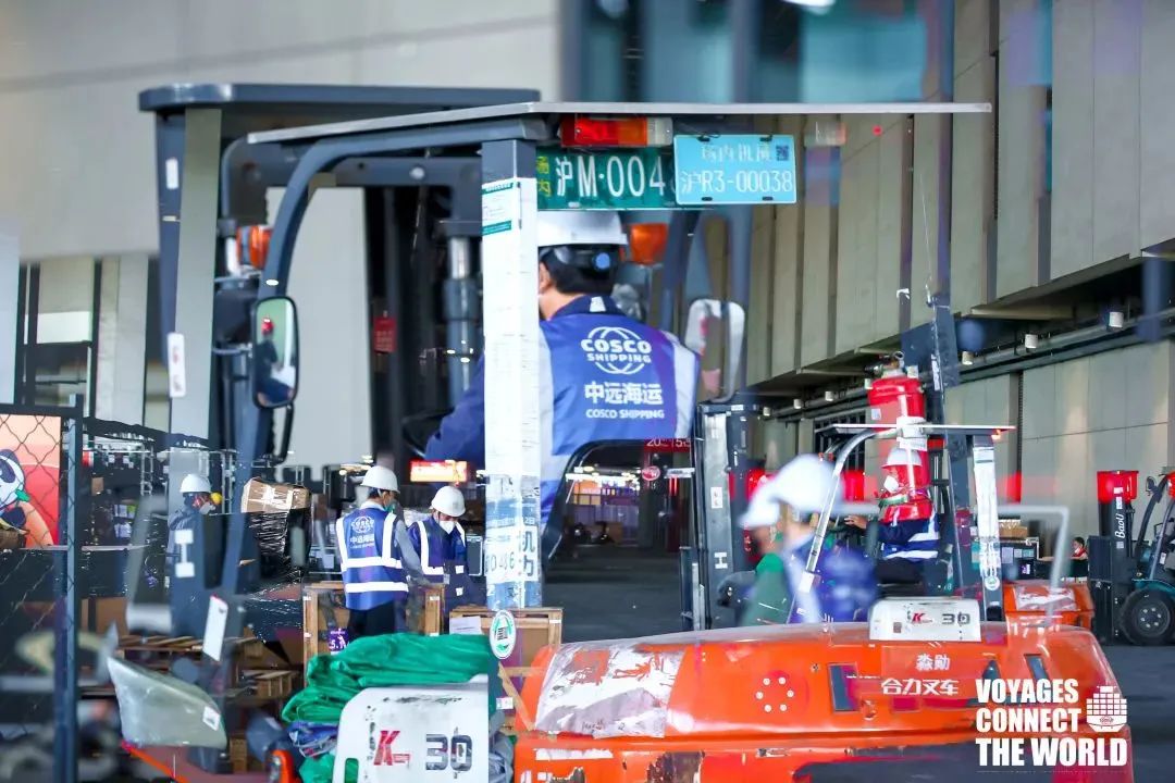 中國東航連續第三年作為“核心支持企業”“指定航空承運商”“采購商”“服務商”,服務保障進博會,截至10月21日,東航物流已保障第五屆進博會展品共計24票105件17851公斤。中國遠洋海運集團作為中國國際進口博覽局唯一推薦的國際段運輸服務商,連續5年為進博會提供展品運輸,為展會順利開展提供有力保障。