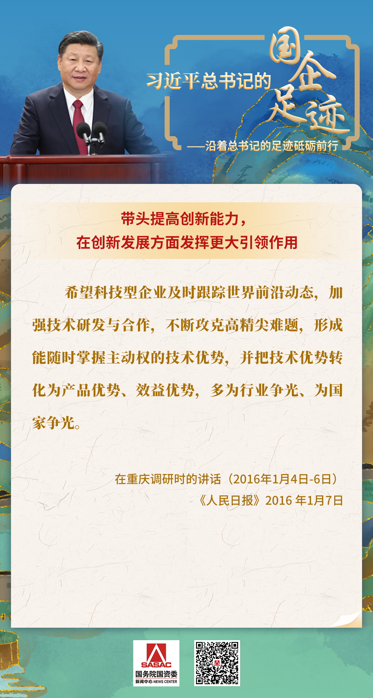 新中國成立75周年之際,國務院國資委網站推出了《習近平總書記的國企足跡—學習要義》系列專題海報,指導國資國企深入學習、理解、掌握習近平同志關于發展國有經濟的論述,自覺用習近平新時代中國特色社會主義思想武裝頭腦、指導實踐、推動工作。