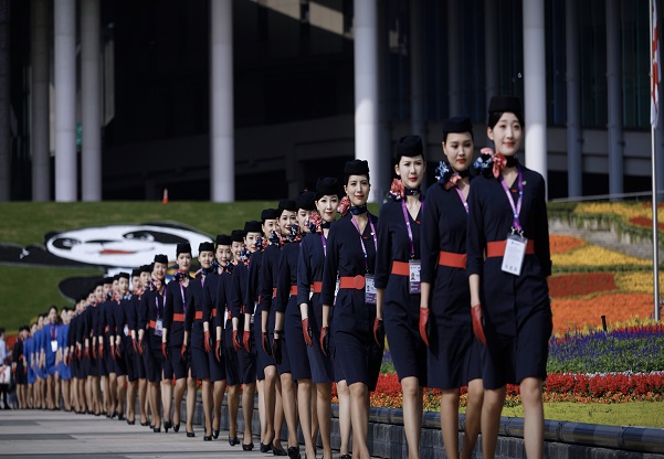 中國東航近80名乘務員入駐“四葉草” 提供禮儀服務保障+藝術品雙語講解