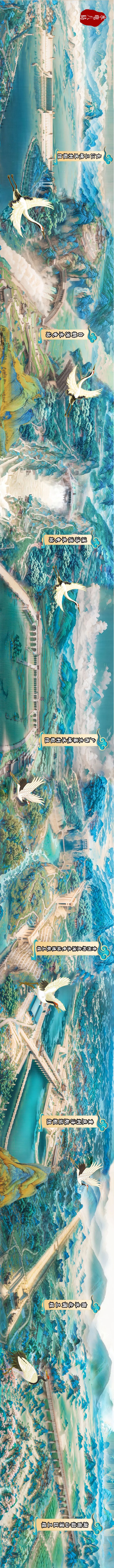 新中國十大水電站,水電八局參建前九,我們用 AI 還原王希孟的筆觸,穿越歷史的長河,感受新時代國風山水里的工程之美。大壩如長龍橫臥于江河之上,水電站如明珠鑲嵌在山谷之間;輸水長渠穿山越嶺;人工天河猶如銀河倒懸……