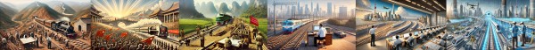 作品選取了中國鐵路發展歷史上幾個典型時期,以 AI 繪圖方式,利用工程項目、地域特色、地標建筑等重塑標志性畫面,并以此展現不同時期鐵路建設的場景,反映時代變遷、社會變革以及科技進步,由此逐步升華主題。