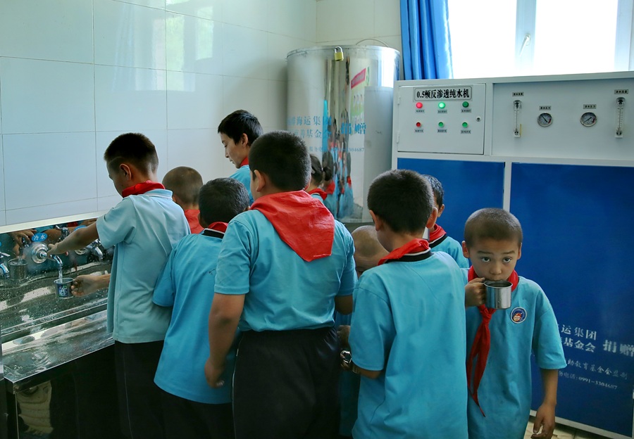 2016年以來,中遠海運聯(lián)合新疆資助教育基金會,在新疆喀什、吐魯番等地學校添置凈化飲水機、乒乓球臺、籃球架等設(shè)施。圖為凈化飲水及體育設(shè)施投入前后對比。