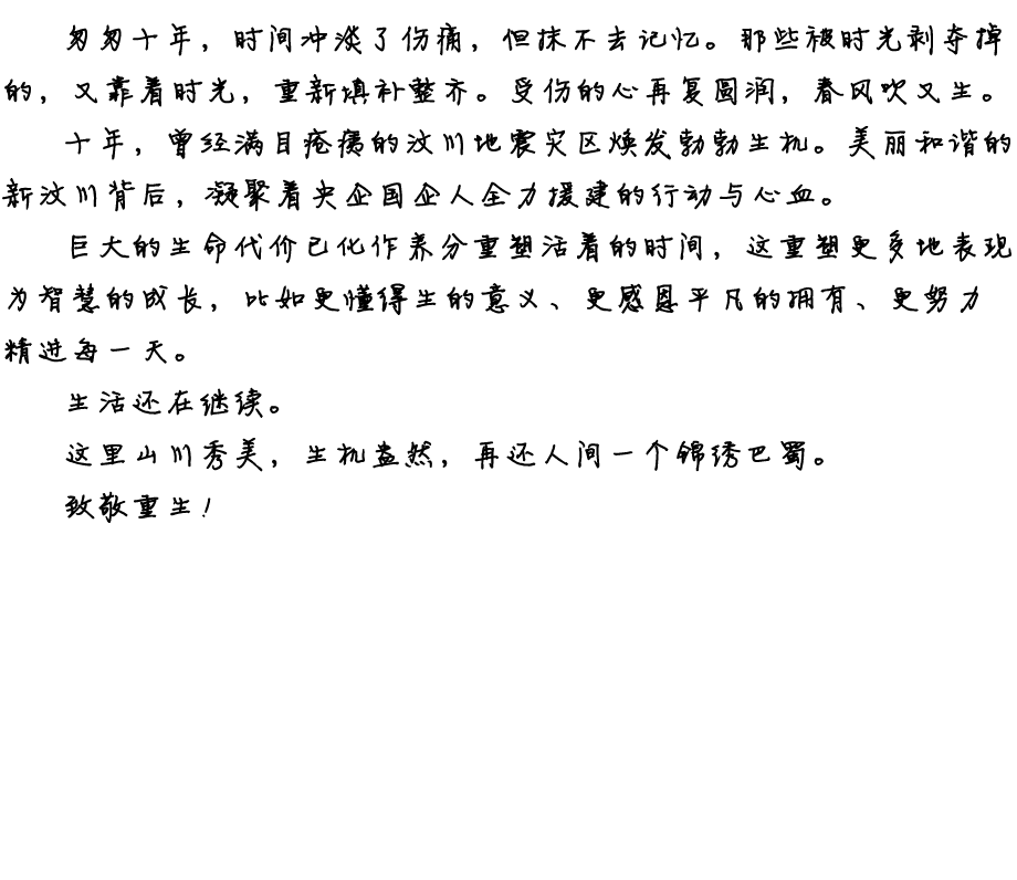 十年重生十年巨變,美麗的漢源傾注了中國能建葛洲壩人的一腔熱血