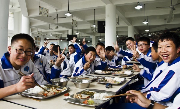 映秀中學,食堂師傅正用潔凈的天然氣給孩子們做飯。