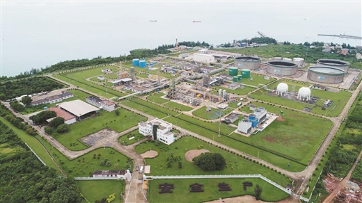 10月25日、26日,國務院國資委新聞中心聯合中國海洋石油集團有限公司舉辦“新時代,走進新國企”活動,近20家國內主流媒體走進潿洲油氣處理終端,探秘海上油氣開發,了解企業踐行綠色低碳的做法。圖為潿洲油氣處理終端作業區。(南國早報記者 彭慶攝)