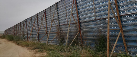 軌枕車間成品骨料庫的抑塵措施。原先的成品骨料庫進行改建,場地重新硬化平整,外圍采用鋼構件塑鋼硬質圍擋,防止揚塵的產生。