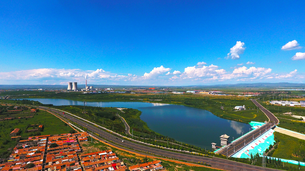 作品說(shuō)明:2018年8月,位于烏蘭察布市集寧區(qū)的京能集寧電廠矗立在霸王河畔,呈現(xiàn)出一派和諧發(fā)展的景象。