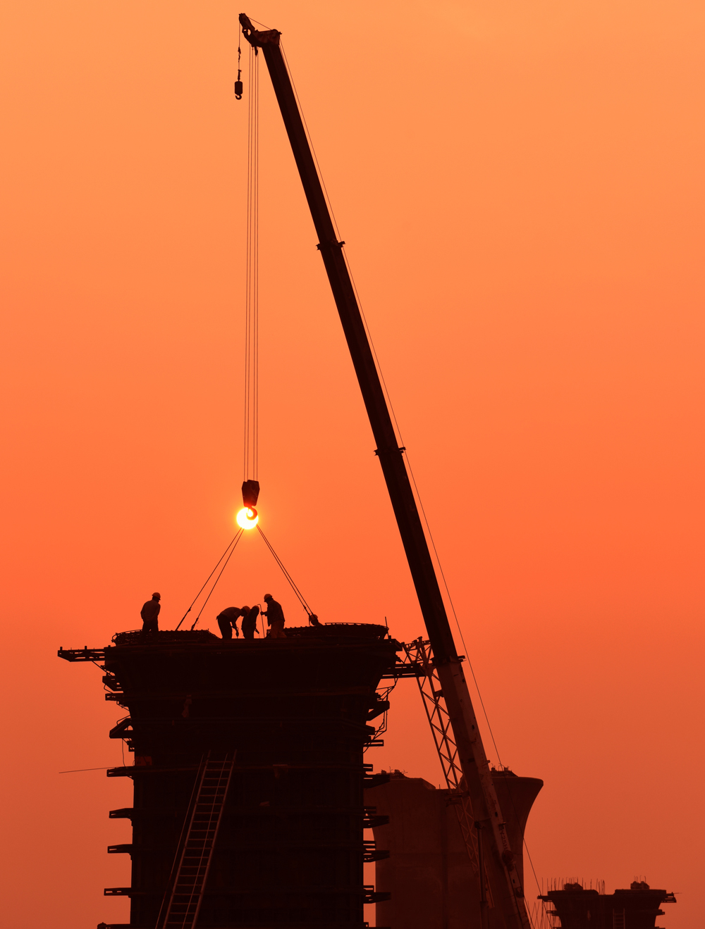 作品說明:2016年9月14日,在濟(jì)青高鐵工程的建設(shè)中,中鐵上海工程局濟(jì)青高鐵項目部的建設(shè)者在夕陽下勞作。