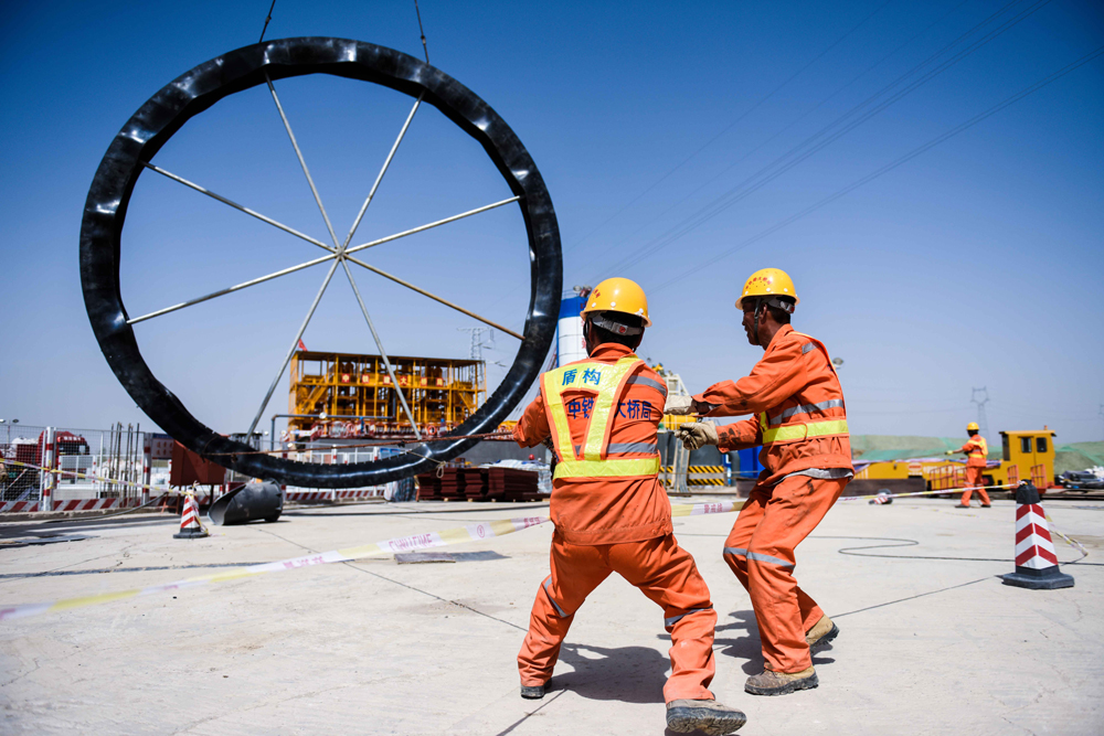 作品說明:銀川“東熱西送”集中供熱穿越黃河隧道的“初心號”盾構機,總長132米,重1500噸,開挖直徑9.05米,技術參數與設計建造水平世界領先,為銀川市冬季無煤化供熱打通黃河底部的清潔熱源通道。