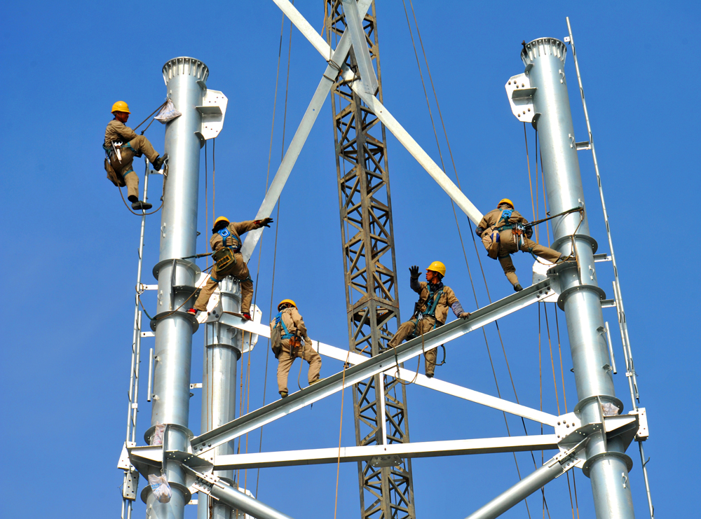 作品說明:2017年12月26日,廣東中山500千伏文山站輸電線路工程進入倒排工期,500千伏獅桂線路進行解口接入文山站。圖為廣東省輸變電工程公司線路二分公司施工人員在距離地面60多米高處組裝B104鐵塔。