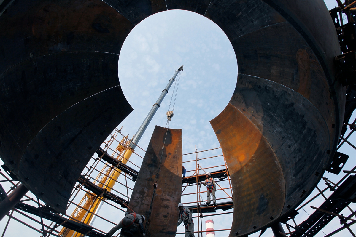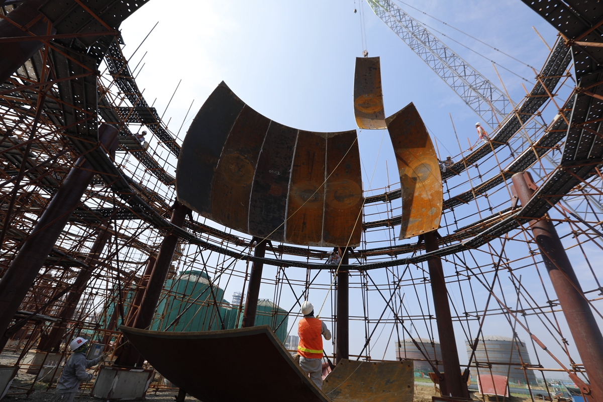 作品說明:球罐是化工企業的常見存儲設備,作為壓力容器,對材質和建造質量的要求都很高,建造難度也較大,在建造工人巧手的“縫制”下,一臺臺球罐逐漸成型。