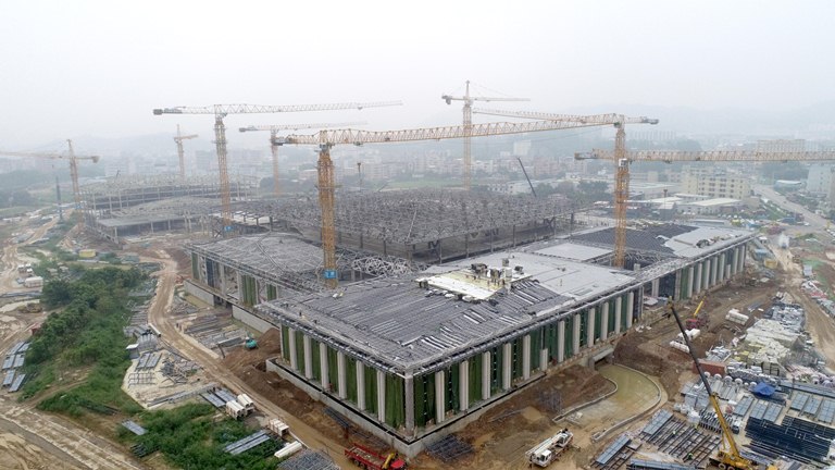 要打造這樣獨特造型的建筑,必須要創(chuàng)新技術(shù)。項目經(jīng)過討論研究后決定采用液壓同步整體提升的技術(shù),“這就好比用一個巨人之手,把已經(jīng)在地面組裝好的連廊直接提升到高空?!表椖拷?jīng)理朱早孫解釋這項新技術(shù)。不同于過去小體量的低空提升,這次體量和高度都超乎尋常,為了確保萬無一失,項目引入BIM技術(shù),通過電腦模擬了整套施工流程,確保提升精準度。雖然今天BIM技術(shù)已經(jīng)推廣普及,而在2013年,用BIM還是新鮮的探索。在深圳人看來,創(chuàng)新已是一種習慣,不只是理念、技術(shù)和實際行動,更是一種文化新生態(tài),融入到深圳人的血液和骨子里,這對生在深圳、長在深圳的小伙兒黃嘉民來說也不例外。剛剛畢業(yè)一年的他是坪山會展中心的一名技術(shù)員,他所在的項目是中建二局在坪山區(qū)的一次創(chuàng)新嘗試。作為該區(qū)首個 EPC裝配式項目正在創(chuàng)造新時代的“深圳速度”——占地8.7萬平方米的會展中心建設(shè)工期僅8個月,比同類項目工期快了3倍!